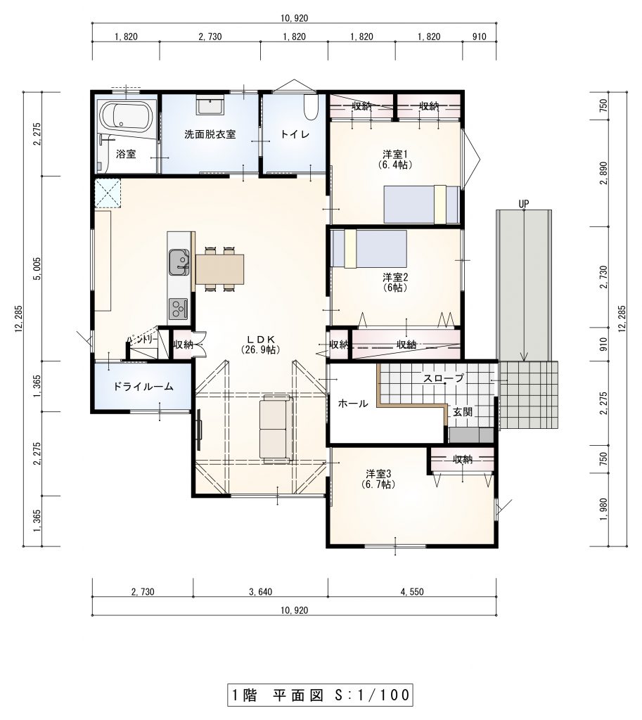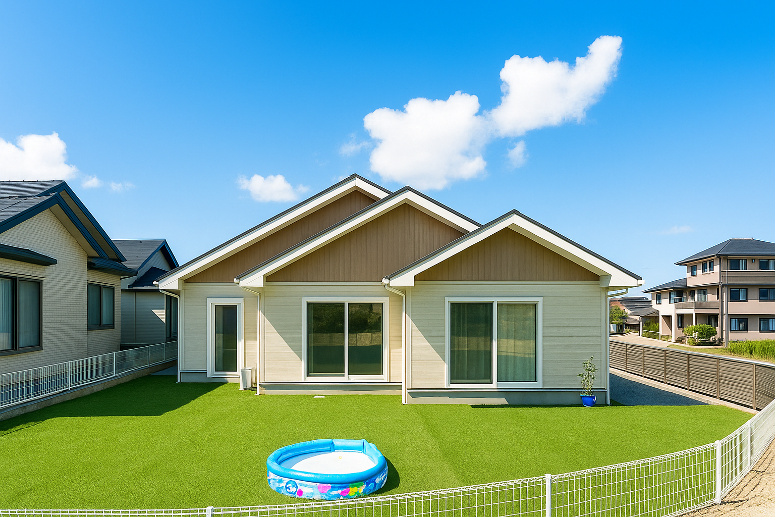 3段切妻屋根がポイントのかわいい外観の平屋