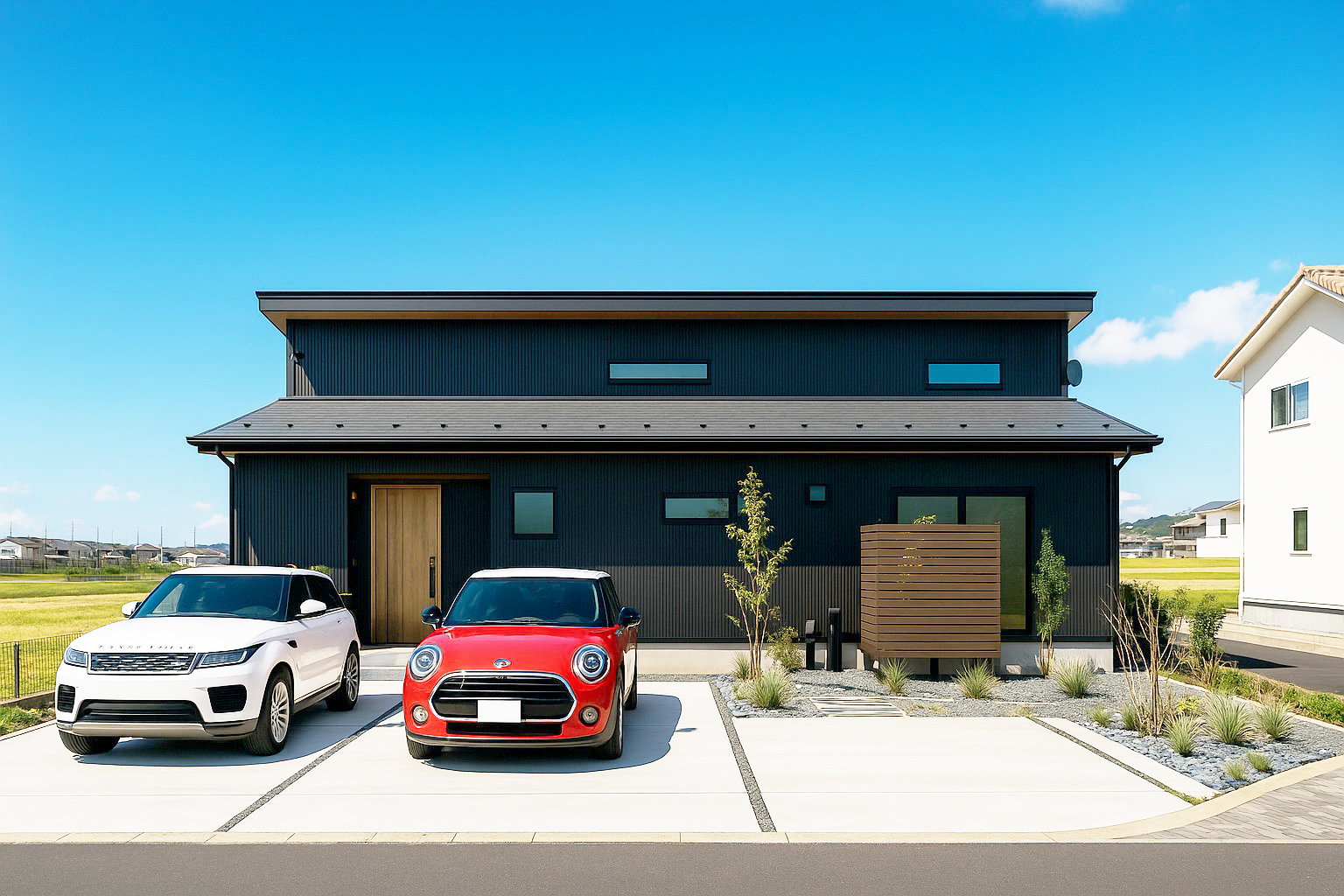 ガルバリウムの外壁と段違い片流れ屋根の平屋